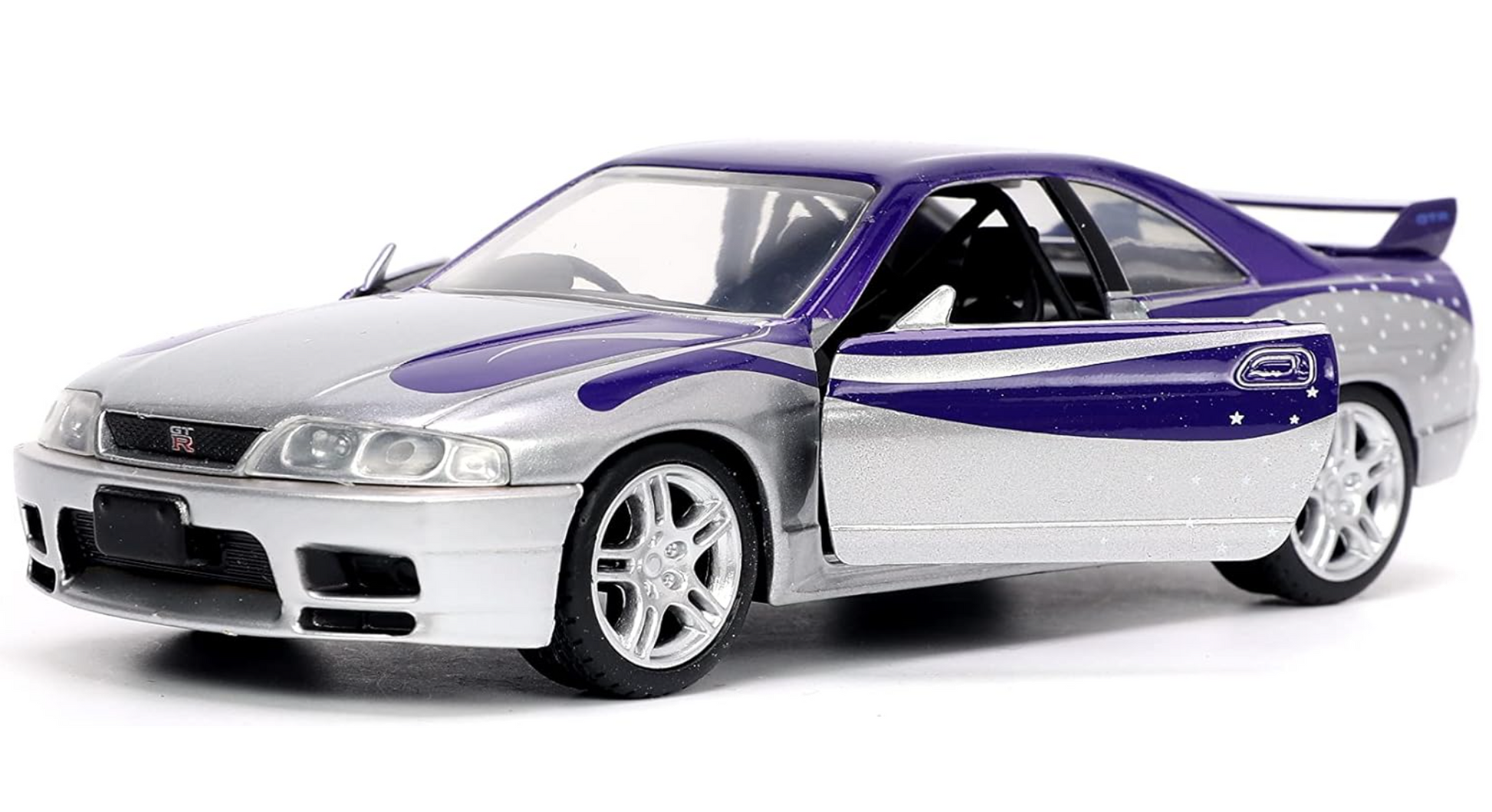 Lleva a tu colección uno de los íconos más respetados del mundo JDM con el Nissan Skyline GT-R (R33) 1995 de Fast & Furious, recreado por Jada Toys con gran precisión y estilo.